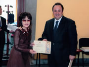 28日、国際いけ花から派遣された佐々木夫美子教授は、レセプションパーティーに出席し、ソレント市長より感謝状をいただきました。フリオテーノ宮殿での椿と桃を使ってのいけ花デモンストレーションでは大きな拍手をいただき、多くの質問も飛び交いました。またその後のワークショップ(いけ花講習会)には多くのイタリア人が参加され、初めていけ花を経験する方も多く、剣山には驚きの声が上がっていました。