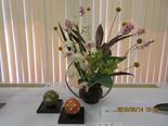 中野ゼロホールで5月8日から10日まで開催された文化祭に増田三千代教授が出展しました。「ネパールの復興を願って」というテーマで、おおでまり、シンビジューム、オンシジューム、アルストロメリア、オーニソガラム、キクなどを生けました。背の高い方は山岳地帯、低い方はカトマンズのイメージです。
