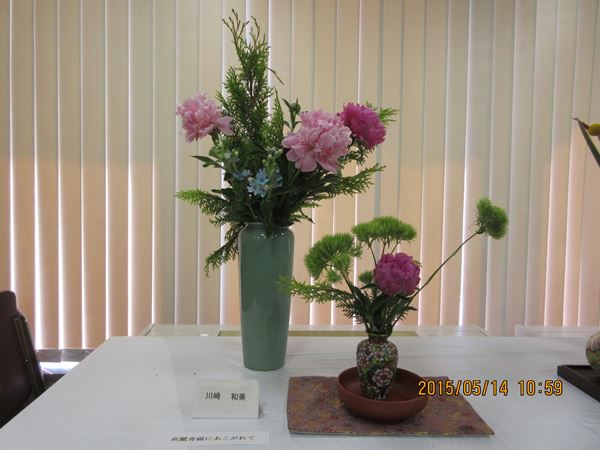 介護付有料老人ホーム「舞浜倶楽部」において、月一回、川ア和美教授の指導で国際いけ花のお教室が開かれています。3月、4月5月の作品です。