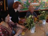ブルガリア公使夫人Mme.Agima Marinaがご帰国の為、日本で最後のレッスンとなり、桜の木で作られた額入りの国際いけ花協会、基本課程の修業証書を授与しました。籠に入ったアレンジメントも差し上げ、これからもいけ花を続け、日本を忘れず、またいつか再会できますようにとお話しました。その後、フェアウェルティーミーティングを開き、増田三千代教授も参加されました。