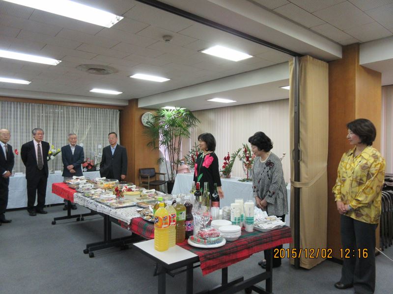 12月16日(水)11時半から、中日ビルのシーボニアにおいて今年も国際いけ花協会の忘年会が行われました。美味しいお料理をいただいた後、華展の反省や今後のことなどそれぞれが意見を述べ、来年に向けて有意義な催しとなりました。