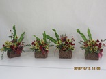 10月12日(水)午後1時から行われた研究会では、吉田まどか先生の担当で秋のアレンジメント作品を作りました。小さめのお洒落な籠にリュウカデンドロン、赤のミニ薔薇、バラの実、タニワタリなどをさし、最後に赤や紫のリボンで仕上げ、<大人かわいい>作品が出来上がりました。