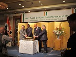 9月25日、コートジボワール独立58周年記念の祝賀パーティーがホテルオークラで開催され、伊藤洋子教授、山越勝之理事、赤岩友美子理事が招待されました。大使のスピーチに続き、堀井学衆議院議員のご挨拶があり乾杯となりました。アフリカのエネルギッシュな音楽の演奏やビデオ放映、アフリカの絵画のデモンストレーションなどもあり、アフリカや世界各国からの方々との有意義な交流の場となりました。