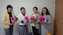 1月の「ラ・リヴィエール」のお教室は、安川いつみ教授の指導で、新しい年のHappyなスタートを願って、ピンクの花とリボンで可愛ブーケHappy pink bouquetを作りました。花材はバラ、カーネーション、ガーベラ、ヒペリカム、ラナンキュラス、ストロベリーキャンドル、ユウギリソウ、レモンリーフで、ピンクの夢が広がりました。お稽古のあとは、香り高いお紅茶とお菓子をいただき、ゆったりとしたひと時を過ごすことができました。