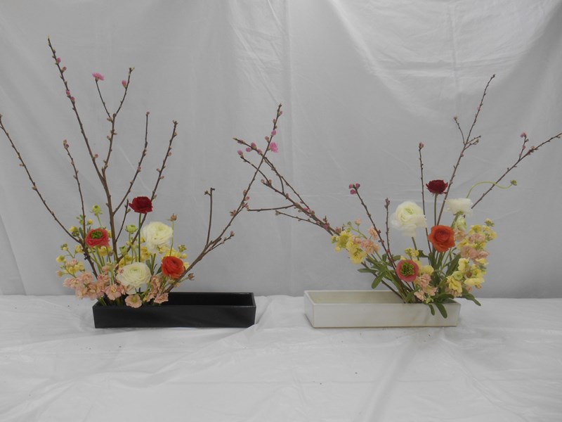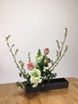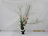 2月25日(月) 神保町教室にて4人が参加して行われました。お雛祭りを控え、桃の花をはじめ、パステルカラーの彩でほのぼのとさせる春のいけ花となりました。