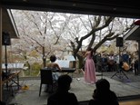 3月30日土曜、花冷えの一日でしたが、練馬区の向山公園では観桜会が開催され、庭園コンサート(バイオリンとピアノのデュオ)、茶会、いけ花展示のイベントが開かれました。