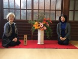 1月25日(土)と26日(日)、台東区根津の臨済宗妙心寺派のお寺、天眼寺本堂において、新年の「江戸の華會」が開催され、国際いけ花協会から鈴木康子教授が出展致しました。赤い毛氈の上に大輪のガーベラが映えてとても華やかな作品となりました。増田教授、安川教授も拝見させていただき、由緒あるお寺でのお正月の凛とした気分を味わいました。